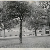 A photo of the left side of Pacific University's Jefferson Hall before Berglund Hall was built.