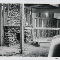 The fireplace in the midst of the construction of Pacific's University Washburne Hall. Washburne Hall is also known as the University Center.