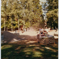 Bags of concrete powder next to the Trombley Square construction