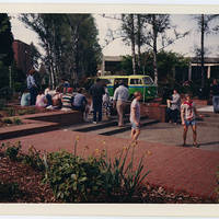 - Students enjoy the completed Trombley's Square.