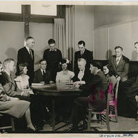The Pacific University Student and Faculty Council of 1944-1945. Some of the students are Dolores Stevens, a graduate of 1946, Trevor Hausske, a graduate of 1947, and Virginia Petroff, the girl with the flowers in her hair who graduated in 1946.