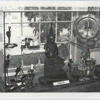 Items from India in a cabinet at the Old College Hall Museum at Pacific University. The items were likely brought back by students who went on to become missionaries.