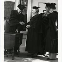 University faculty and honorary graduates at the rededication of Old College Hall.