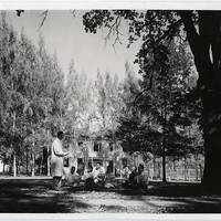 [back] Pacific University- Forest Grove Ore Outdoor Seminar Old College Hall in background student life pre 1960