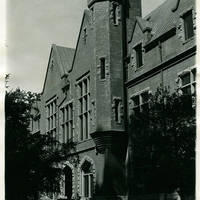 Photo of the west front of Marsh Hall, after the renovation completed as a consequence of the 1975 fire. Notice the new copper roof.