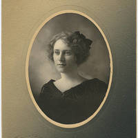 A portrait of an unidentified woman with a bow in her hair. The portrait was discovered in a drawer in the Old College Hall Museum at Pacific University.