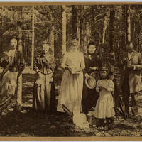 A photo of an unidentified group of individuals on a picnic. The photo was discovered in a drawer in the Old College Hall Museum at Pacific University.