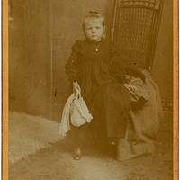 Portrait of an unidentified toddler leaning against a chair. The photo was discovered in a drawer in the Old College Hall Museum at Pacific University.