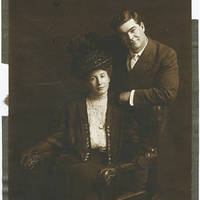 A formal portrait of two unidentified individuals, a man and a seated woman. The photo was discovered in a drawer in Pacific University's Old College Hall Museum.