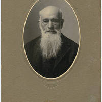 Formal portrait of an unidentified older man with a long, white beard. The photograph was discovered in a drawer in the Old College Hall Museum at Pacific University.