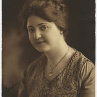 Formal portrait of an unidentified young woman in an embroidered dress. The photo was discovered in a drawer in the Old College Hall at Pacific University.