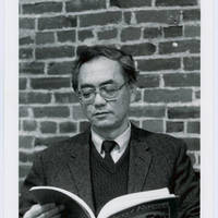 Dr. Miles Shishido reading through a book at Pacific University. Dr. Shishido was an associate Professor of Religion and Philosophy.