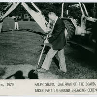 [front] October, 1979, Ralph Shumm, Chairman of the board, takes part in ground breaking ceremonies. [back] oct. 79; chemistry building