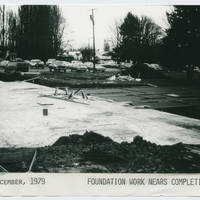 Picture of the foundation nearing completion during the Murdock Hall construction in December 1979 at Pacific University.