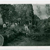 People trying to move the fallen down trees due to the Columbus Day Storm at Pacific University.