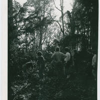 Volunteers cleaning up the debris on Pacific University after the Columbus Day Storm.