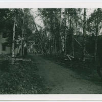 A photo of broken trees and debris near Birch Walk at Pacific University after the Columbus Day Storm in 1962.