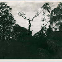 A photo of a broken tree that had fallen down due to the Columbus Day Storm at Pacific University in 1962.