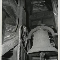 A picture of the bell in the Old College Hall bell tower before the reconstruction in 1980.
