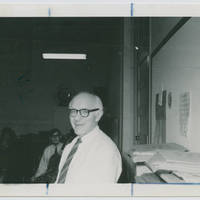 A photo of Raphael Spiro, the orchestra instructor, in a classroom at Pacific University.