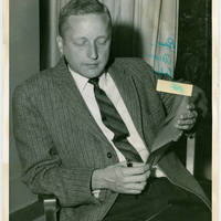 Donald Thulean reading a piece of paper at Pacific University.