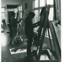 Two students painting in art class