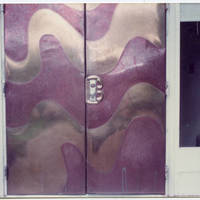 A color photo of the doors to Brown Hall, which were made by Professor Gary Mueller.