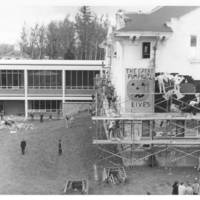 A photo of students painting the old Gym in 1968 at Pacific University.