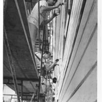 Students painting the Old Gym, at Pacific University. This gym was later torn down in 1971 and the Pacific Athletic Center was built in 1970 to provide a recreational building for the students and staff of Pacific University.