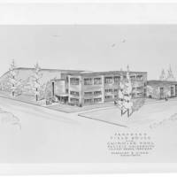 A drawing of the proposed field house and swimming pool, shown in the 1960s at Pacific University.