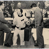 [back] Gamma Sigma fraternity men welcome back a student returning from Christmas vacation