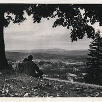 Two unidentified people sit together on a ridge overlooking an unidentified spot in Washington County.
