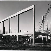Pacific University's second gym, the Pacific Athletic Center, under construction in 1969.