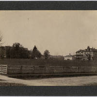 A 1910 photograph of the Pacific University campus. Left to right the buildings are Marsh Hall, Academy Hall, Old College Hall, and the second Herrick Hall. The construction on the second Herrick Hall finished in 1910 and Academy Hall burned down the same year.
