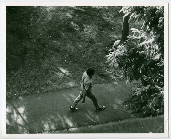 Student walking through campus