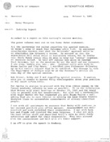 A memo prepared by Gerry Thompson reporting to Governor Atiyeh on October 10, 1981. The report covered topics including: the Senior Services Division legislation; Penwell v. Washington case; the Gresham Hospital construction; Estacada claims and unemployment; and Naturopathic Physicians Schools granting commission (i.e. Portland and Salem). This is one document from a binder containing selected daily reports to the Governor, which was compiled by Gerry Thompson.
