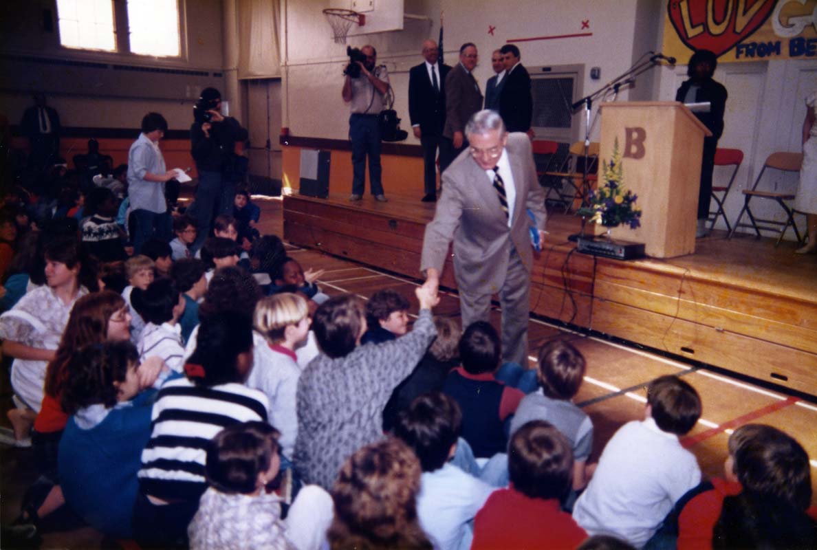 - Atiyeh talks with students at an assembly in the gym of Portland's Beaumont Middle School.