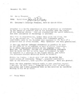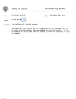 A memo on feedback from a speech given at a Tualatin meeting by Gerry Thompson reporting to Governor Atiyeh on January 7, 1984. This memo suggests that Governor Atiyeh should vocalize his terms and desires in a stronger context. Included in the memo is a statement that does so as an example. This is one document from a binder containing selected daily reports to the Governor, which was compiled by Gerry Thompson.