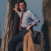 Representative Les AuCoin looks out on the Oregon coast. In typed notes about the image, AuCoin writes: "Pausing to look at the ocean before going on to Astoria, Oregon and a speech." The photo was probably taken in the 1980s. This is one of a collection of digitized objects from the Les AuCoin Papers (MS.147) at the Pacific University Archives. The original photo remains with the AuCoin family.