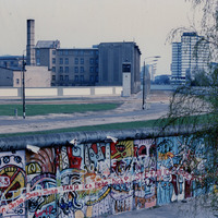 Photo of the western side of the Berlin wall. This is one of a collection of digitized objects from the Les AuCoin Papers (MS.147) at the Pacific University Archives. It originally appeared in an AuCoin family scrapbook documenting U.S. House Speaker Jim Wright's visit to Spain, the Soviet Union, and the Federal Republic of Germany in April 1987. The congressional delegation included Representative Les AuCoin and his wife Sue. Other members of congress on the trip included Tony Coelho, Dick Cheney, Jim Howard, Les Aspin, John Paul Hammerschmidt, Jim Scheuer, Lawrence Coughlin, Ralph Regula, Carrol Hubbard, Tom Downey, Norm Dicks, Wes Watkins, Mickey Leland, Steny Hoyer, Esteban Torres, and Sherwood Boehlert. The AuCoin family loaned the scrapbook to Pacific University Archives in 2022 for digitization, and the scrapbook remains with the AuCoin family.
