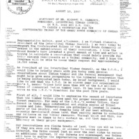 Statement of Michael Clements, President of the Intertribal Timber Council, in support of reestablishing a reservation for the Confederated Tribes of Grand Ronde. The Confederated Tribes of Grand Ronde includes over 30 tribes from Oregon, California, and Washington. In the early 1850s, the United States forced these tribes off their lands, eventually establishing the Grand Ronde Reservation in Oregon in 1857. In 1954, Congress passed the Western Oregon Indian Termination Act, which ended federal recognition of the Confederated Tribes of Grand Ronde. Beginning in the 1970s, tribal leaders began working to restore the tribe's federal status, lobbying Congress to first pass the Grand Ronde Restoration Act in 1983, which restored federal recognition, then the Grand Ronde Reservation Act in 1988, which restored a small part of the reservation. On August 10th, 1987, Representative Les AuCoin scheduled a local hearing to discuss the plan to reestablish a reservation. The hearing included a pro-reservation panel of tribal leaders and an anti-reservation panel led by local lumber mills. Representative AuCoin also invited members of several federal agencies, including the Forest Service, the Bureau of Land Management, the Fish and Wildlife Service, and the Bureau of Indian Affairs, to answer legal questions about the process. This statement outlines the work of the Intertribal Timber Council to manage forest resources on tribal land. This document is one of a collection of digitized objects from the Les AuCoin Papers (MS.147) at the Pacific University Archives. Digital objects PUA_MS147_73 through PUA_MS147_77 and PUA_MS147_128 through PUA_MS147_129 represent a selection of opinions offered at the August 10th hearing.