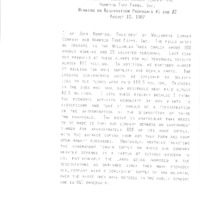 Statement of John Hampton, President of the Willamina Lumber Company and Hampton Tree Farms, opposing the reestablishment of a reservation for the Confederated Tribes of Grand Ronde. The Confederated Tribes of Grand Ronde includes over 30 tribes from Oregon, California, and Washington. In the early 1850s, the United States forced these tribes off their lands, eventually establishing the Grand Ronde Reservation in Oregon in 1857. In 1954, Congress passed the Western Oregon Indian Termination Act, which ended federal recognition of the Confederated Tribes of Grand Ronde. Beginning in the 1970s, tribal leaders began working to restore the tribe's federal status, lobbying Congress to first pass the Grand Ronde Restoration Act in 1983, which restored federal recognition, then the Grand Ronde Reservation Act in 1988, which restored a small part of the reservation. On August 10th, 1987, Representative Les AuCoin scheduled a local hearing to discuss the plan to reestablish a reservation. The hearing included a pro-reservation panel of tribal leaders and an anti-reservation panel led by local lumber mills. Representative AuCoin also invited members of several federal agencies, including the Forest Service, the Bureau of Land Management, the Fish and Wildlife Service, and the Bureau of Indian Affairs, to answer legal questions about the process. John Hampton led the anti-reservation panel, and his testimony outlines their major complaints. First, that reestablishing a reservation would give "special dispensation of government lands for Indian purposes" and second, that the reservation would impact "our potential wood supply and the cost of that wood supply". This document is one of a collection of digitized objects from the Les AuCoin Papers (MS.147) at the Pacific University Archives. Digital objects PUA_MS147_73 through PUA_MS147_77 and PUA_MS147_128 through PUA_MS147_129 represent a selection of opinions offered at the August 10th hearing.
