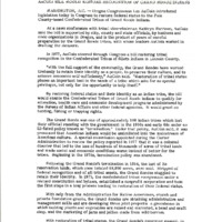 Press release from the office of Representative Les AuCoin announcing the introduction of legislation to restore federal status to the Confederated Tribes of Grand Ronde. The Confederated Tribes of Grand Ronde includes over 30 tribes from Oregon, California, and Washington. In the early 1850s, the United States forced these tribes off their lands, eventually establishing the Grand Ronde Reservation in Oregon in 1857. In 1954, Congress passed the Western Oregon Indian Termination Act, which ended federal recognition of the Confederated Tribes of Grand Ronde. Beginning in the 1970s, tribal leaders began working to restore the tribe's federal status, lobbying Congress to first pass the Grand Ronde Restoration Act in 1983, which restored federal recognition, then the Grand Ronde Reservation Act in 1988, which restored a small part of the reservation. This document is one of a collection of digitized objects from the Les AuCoin Papers (MS.147) at the Pacific University Archives. See also PUA_MS147_73 through PUA_MS147_84 and PUA_MS147_128 through PUA_MS147_129 for further information about the Grand Ronde bills.