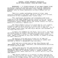 Press release from the office of Representative Les AuCoin announcing that he and Representative Peter DeFazio introduced legislation to designate a 19-mile portion of the Upper Klamath River a National Wild and Scenic River. This is one of a collection of digitized objects from the Les AuCoin Papers (MS.147) at the Pacific University Archives.