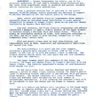 A copy of The AuCoin Report titled "AuCoin Works on River Protection; Backs Bill to Preserve Artic Wilderness". The AuCoin Report was a newsletter produced by the office of Representative Les AuCoin to update Oregon voters about his work in Congress. This newsletter discusses three recent steps Representative AuCoin took to preserve the environment: supporting the wilderness designation of the Arctic National Wildlife Refuge; introducing legislation to grant special recognition to dozens of Oregon rivers; and introducing legislation to name a portion of the Upper Klamath a National Wild and Scenic River. This is one of a collection of digitized objects from the Les AuCoin Papers (MS.147) at the Pacific University Archives. See also PUA_MS147_23 for image of Representative AuCoin visiting the Arctic National Wildlife Refuge.
