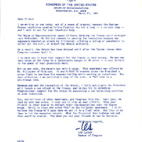 Form letter from Representative Les AuCoin to voters, asking for their support for the Nuclear Freeze resolution. The letter, written March 23rd, 1983, discusses recent the debate in the House on the resolution, which ended in a filibuster. This is one of a collection of digitized objects from the Les AuCoin Papers (MS.147) at the Pacific University Archives. See also PUA_MS147_93 through PUA_MS147_110 for other materials related to nuclear arms control.