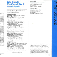 Pamphlet titled "To Combat the Menace of Nuclear War" produced by the Council for a Livable World. Founded in 1962, the Council for a Livable World is a non-profit organization dedicated to nuclear disarmament. This pamphlet outlines recent work of the organization with congressional elections, and it was likely published in 1986. This is one of a collection of digitized objects from the Les AuCoin Papers (MS.147) at the Pacific University Archives. See also PUA_MS147_93 through PUA_MS147_110 for other materials related to nuclear arms control.