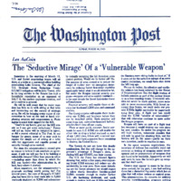 Issue Report mailing produced by the office of Representative Les AuCoin on March 20th, 1985. The mailing includes a letter from Representative AuCoin updating voters on upcoming votes on funding MX missiles. The mailing also includes a copy of a recent article in the Washington Post written by Representative AuCoin titled "The Seductive Mirage of a Vulnerable Weapon". This is one of a collection of digitized objects from the Les AuCoin Papers (MS.147) at the Pacific University Archives. See also PUA_MS147_93 through PUA_MS147_110 for other materials related to nuclear arms control.