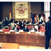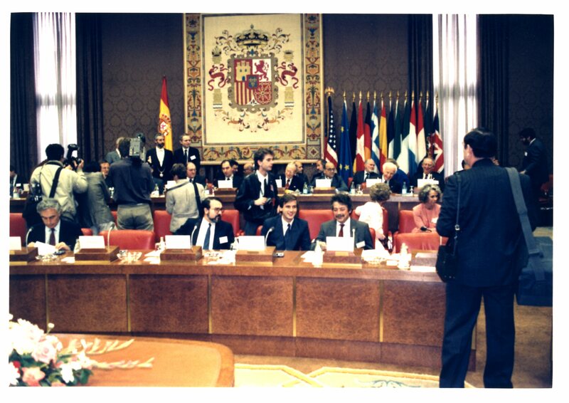 A photograph of the 28th Meeting of the U.S. and European Parliament in Madrid, Spain.