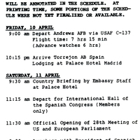 It originally appeared in an AuCoin family scrapbook documenting U.S. House Speaker Jim Wright's visit to Spain, the Soviet Union, and the Federal Republic of Germany in April 1987. The congressional delegation included Representative Les AuCoin and his wife Sue. Other members of congress on the trip included Tony Coelho, Dick Cheney, Jim Howard, Les Aspin, John Paul Hammerschmidt, Jim Scheuer, Lawrence Coughlin, Ralph Regula, Carrol Hubbard, Tom Downey, Norm Dicks, Wes Watkins, Mickey Leland, Steny Hoyer, Esteban Torres, and Sherwood Boehlert.